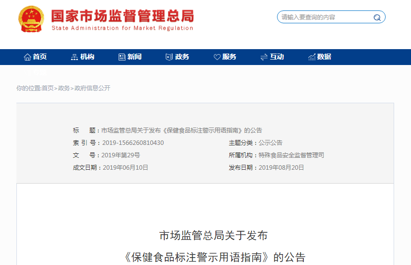 市场监管总局关于发布《保健食品标注警示用语指南》的公告